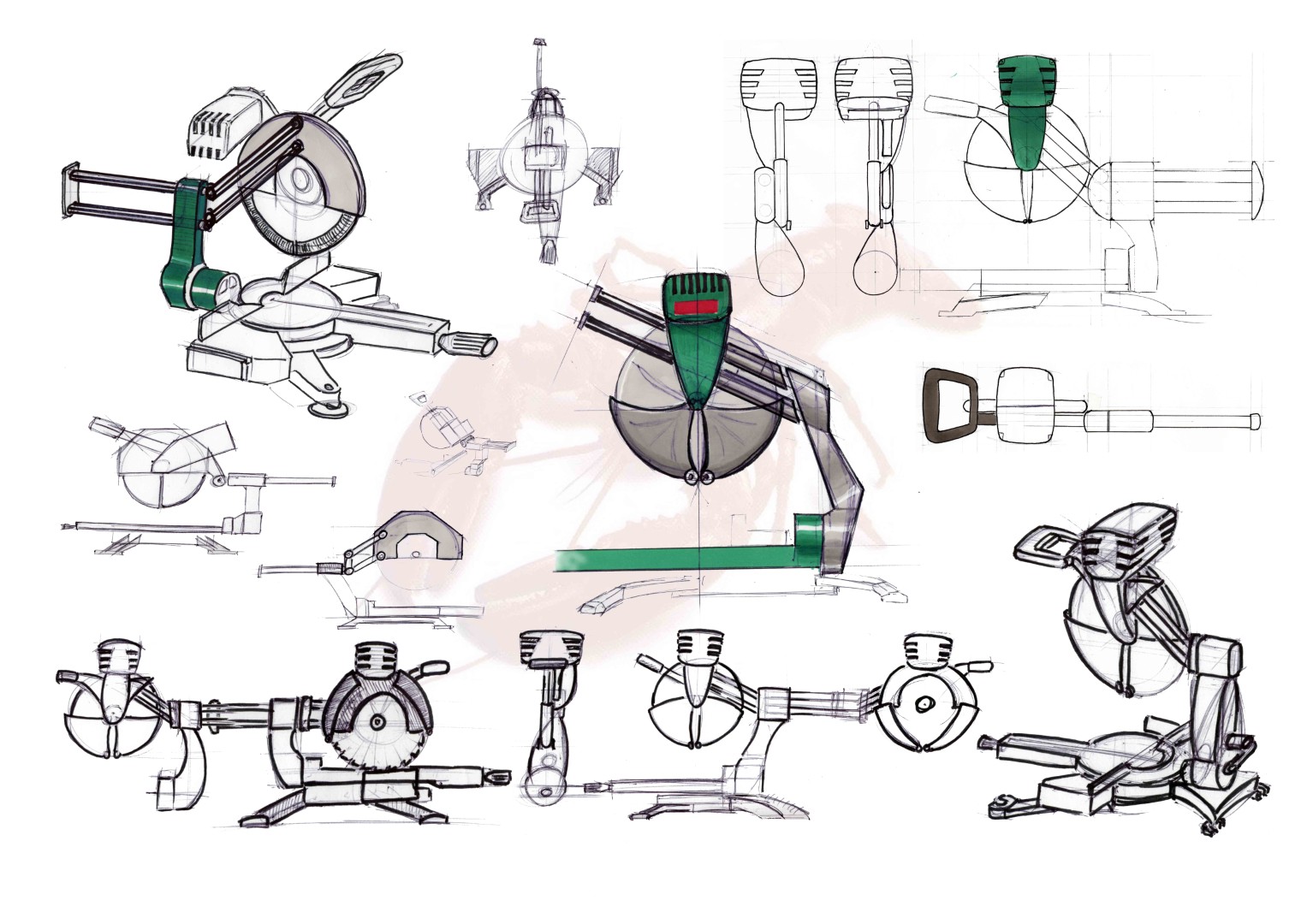 The second design features a clear, functional shape with accentuated mechanics and robust proportions. The focus is on ergonomics and usability, giving the saw a classic industrial look.