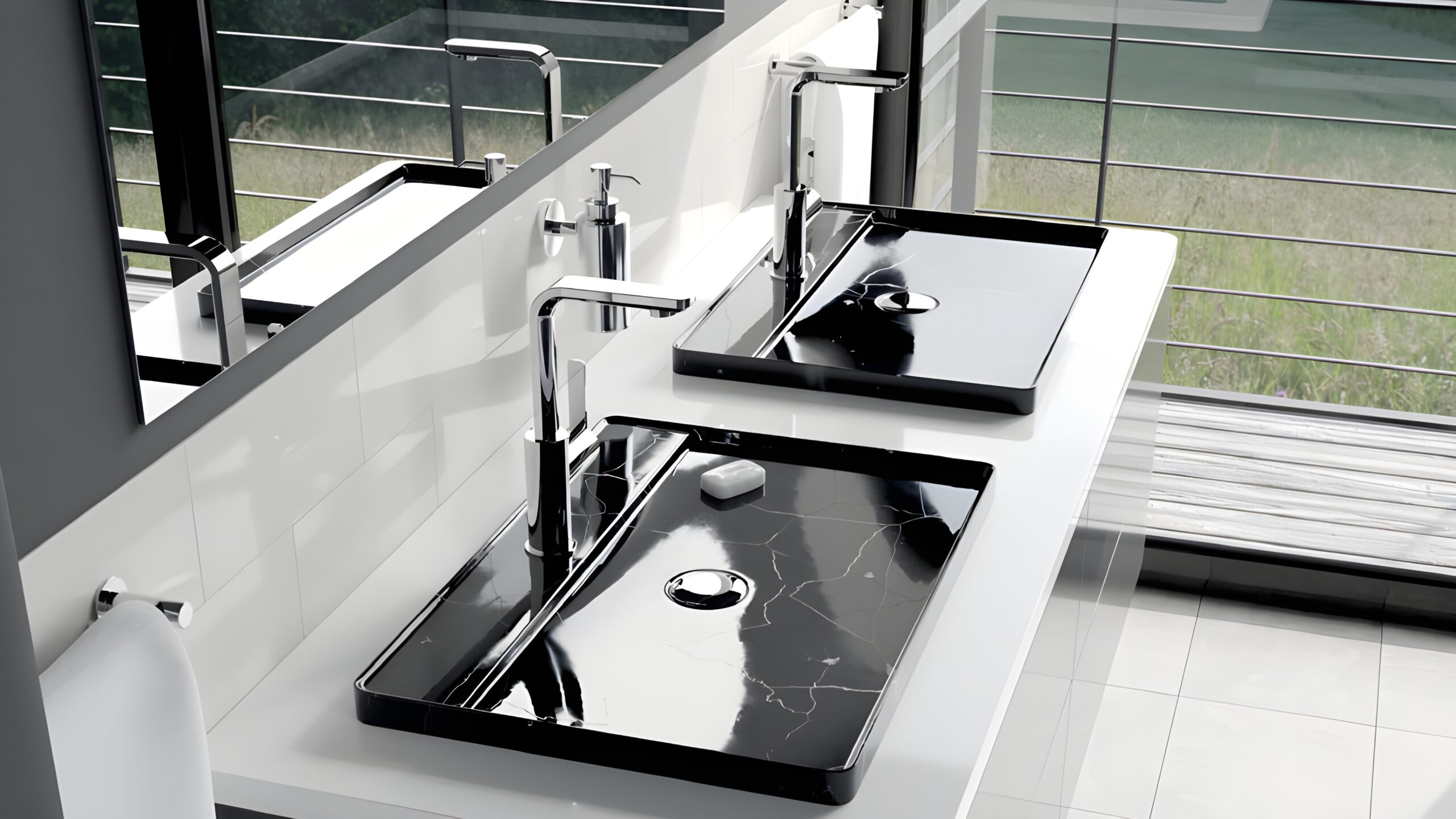 Guanxi Nero is a black marble very similar to Nero Marquina. It comes from the southern Chinese province of Guangxi, which is a popular tourist destination due to its karst landscape. The elegant surface blends easily into luxurious environments. Whether tone-on-tone or contrasting with white materials, it is a highlight in modern bathroom design.