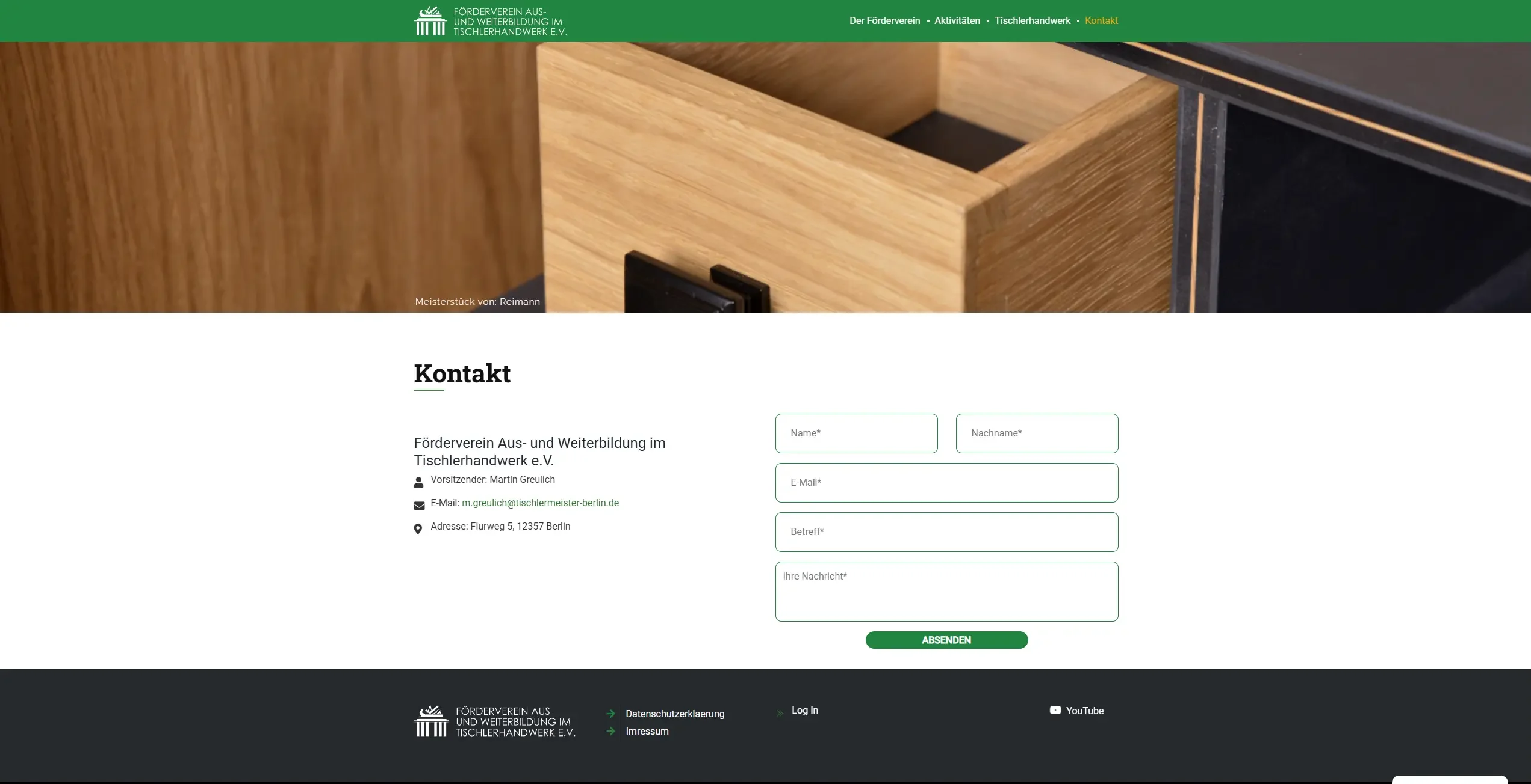 Für den Förderverein haben wir ein frisches digitales Erscheinungsbild entwickelt, das die Leidenschaft für das Tischlerhandwerk sichtbar macht. Von der Konzeption bis zur Umsetzung entstand eine moderne Plattform, die das Handwerk und seine Zukunft in den Mittelpunkt stellt.